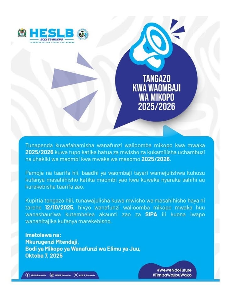 Wanafunzi wote walioomba mkopo wanatakiwa kuangalia taarifa zao kwenye akaunti zao za SIPA.