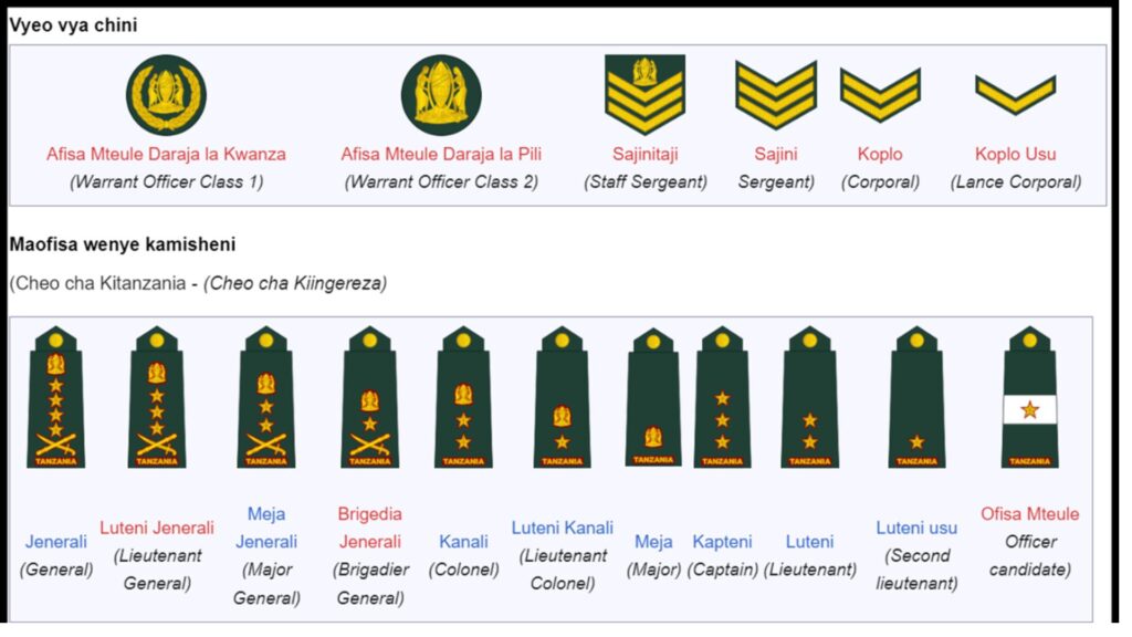 Muundo wa Vyeo katika Jeshi la wananchi JWTZ